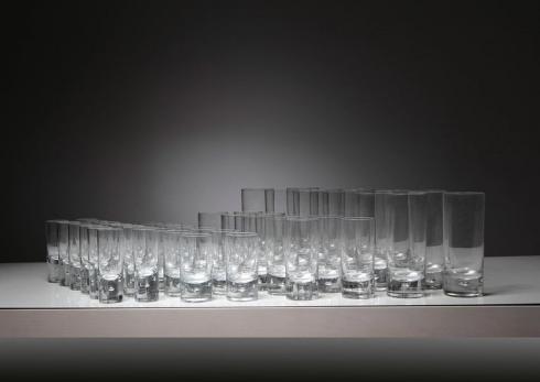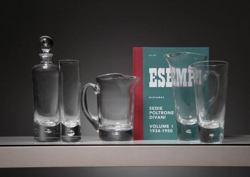 The set is composed by 4 groups of glasses with sizes from h. 17 x 7 to h. 12 x 4 and a couple of pitchers, a vase and a bottle.