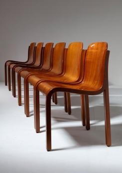 Set of Six Bartoli Mito plywood chairs for T70