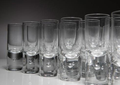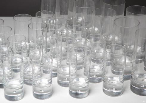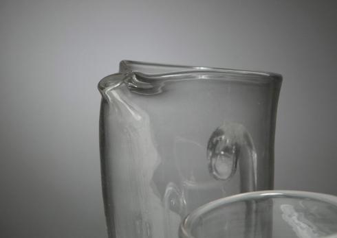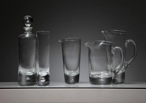 The set is composed by 4 groups of glasses with sizes from h. 17 x 7 to h. 12 x 4 and a couple of pitchers, a vase and a bottle.