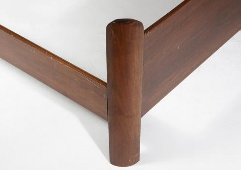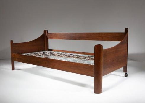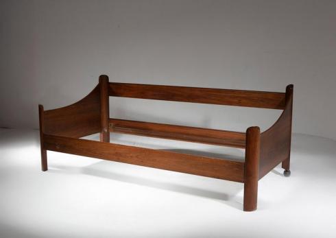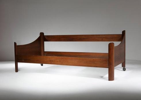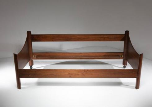 Rare "San Martino" daybed by Luigi Caccia Dominioni for Azucena. Massive walnut frame with sculptural ends three dimensionally designed.